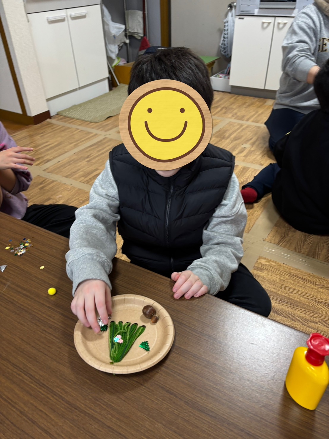 支援員の説明をよく聞きながら、好きなビーズやどんぐり等を飾り付けてとても素敵なリースができました!